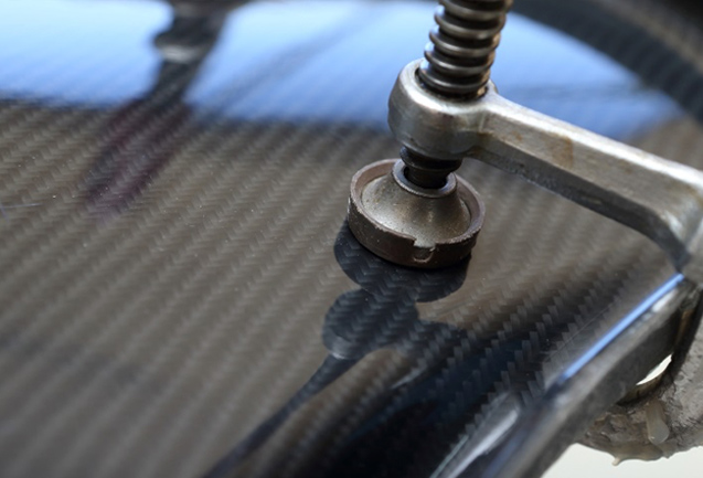 ブリッドではシェルをハンドメイドで製造しています。アラミド繊維への樹脂・硬化剤の塗布や、硬化したシェルの脱型、バリをとる削り、仕上げの磨きまですべて熟練のスタッフによる手作業で行います。多彩なバリエーションをもつブリッドのシートは、それぞれのシェル形状の細部の違いや、ホールド性を高めるために設計されたこだわりの形状にはハンドメイドによるきめ細やかな作業が必要になります。また、フルバケットシートの破断強度を格段に上げるためにアラミド繊維は部分裁断せず、シェル全体を一枚物で一体成形で仕上げています。ハンドメイドであるからこそ形状が複雑なシートシェルであっても、繊維素材を隅々までシートシェルの型に合わせこむことができ、高いホールド性を実現する製品が製造できるのです。