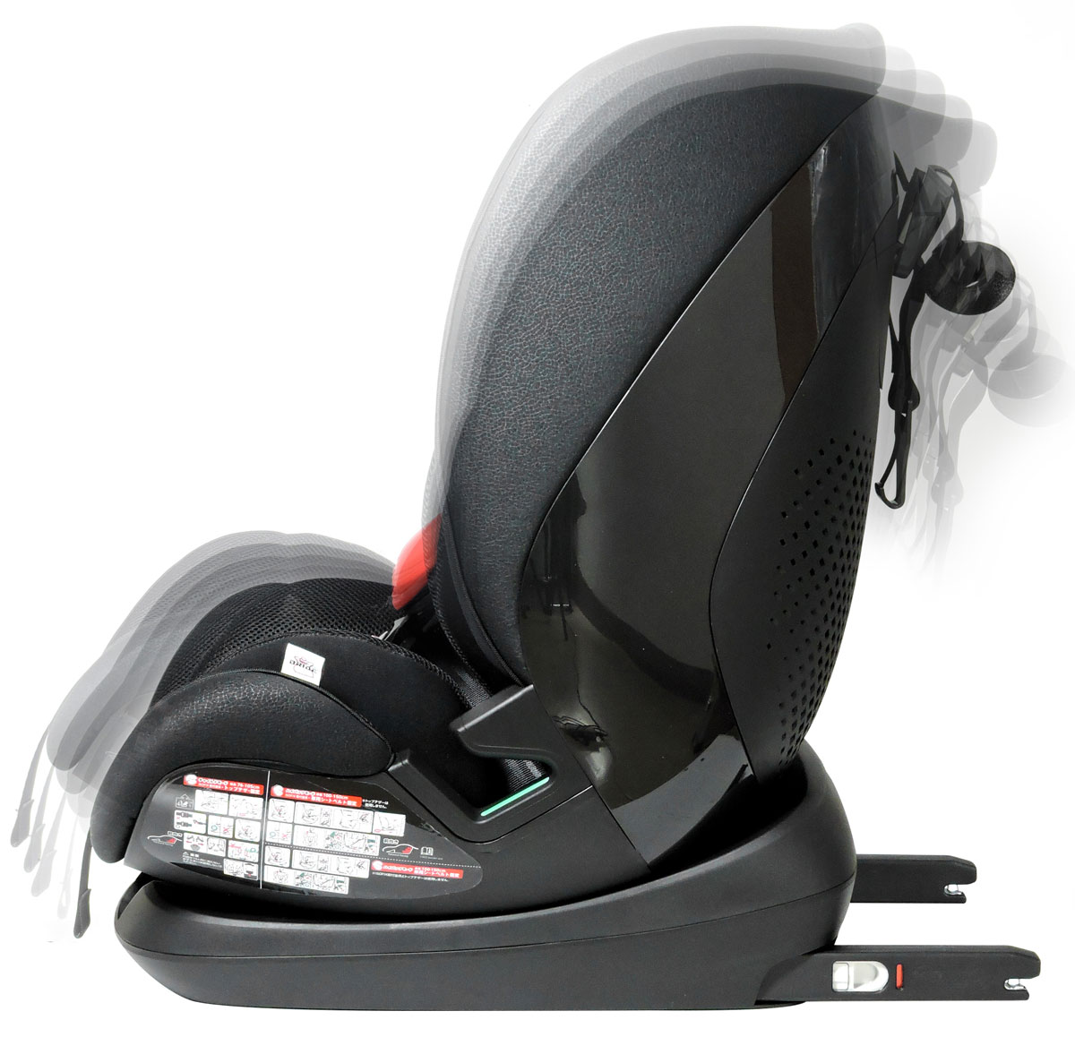 コンフォルテ・レーシングは、レーシングシートをモデルにしたモノコックボディのフォルムにより、ディープなホールド性を実現しています。チャイルドシートの最新安全規則R129に適合する高い安全性を持ち、お子様の成長に合わせたモードチェンジ・各部の調整により、15ヵ月~12歳頃(めやす)のお子様まで長くお使いいただけるチャイルドシートです。