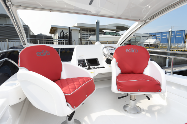 "edirb for Marine Sport model" is packed with know-how gained from years of sports seat production, such as durability, comfort, and touch (Reference information).