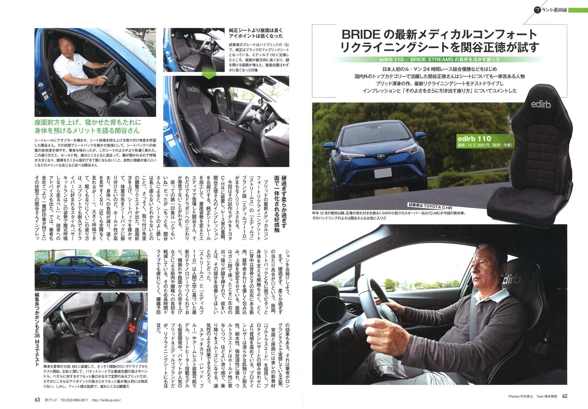 REV SPEED 7月号(5/26発売号)に関谷正徳氏によるBRIDEシートのインプレッション記事が掲載されました。
