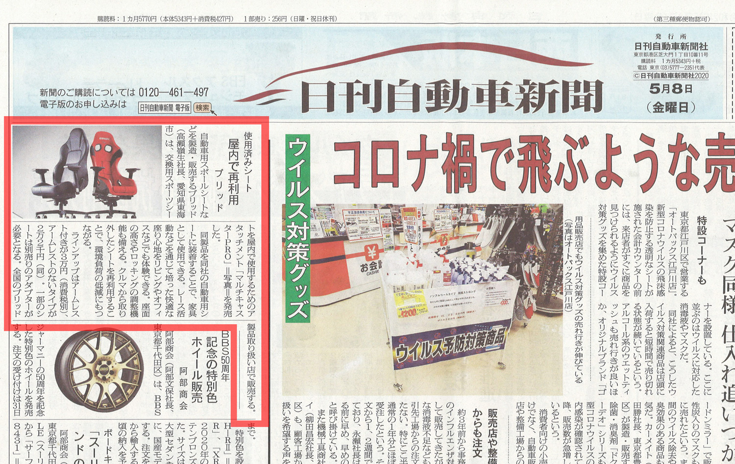 日刊自動車新聞 5/8 にBRIDEの記事が掲載されました。