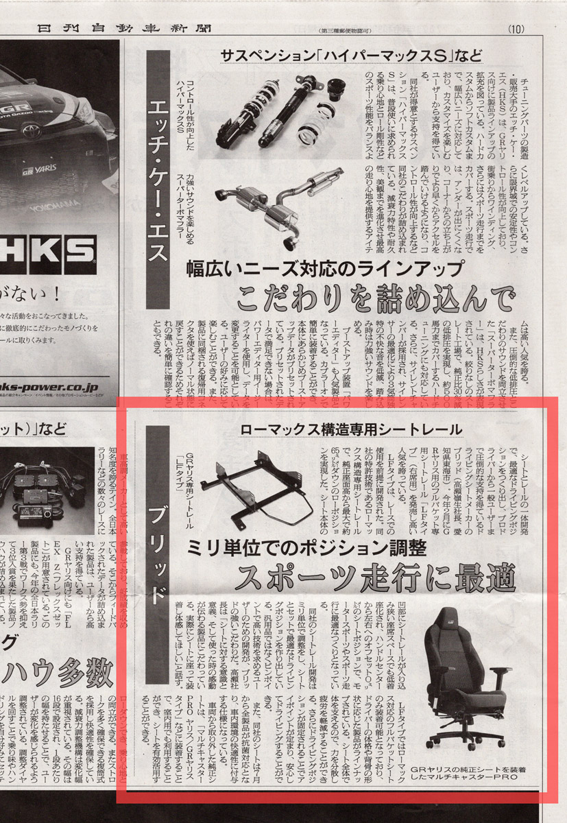 【レブスピード 11月号】【ハイパーレブ ホンダ S2000 No.10 / vol.256】【日刊自動車新聞 9/30】にBRIDE製品の記事が掲載されました !