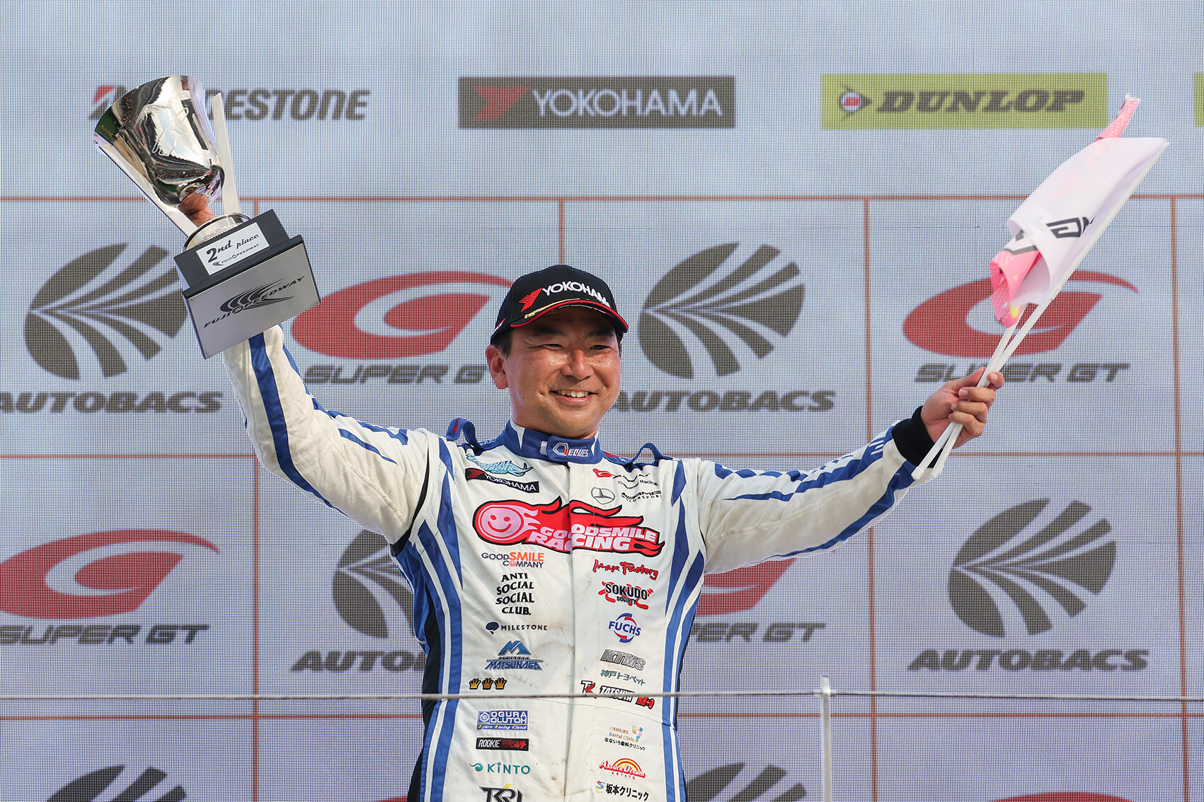 GT300クラスでは、5番手スタートの #4 片岡 龍也選手(グッドスマイル 初音ミク AMG) が2位表彰台、