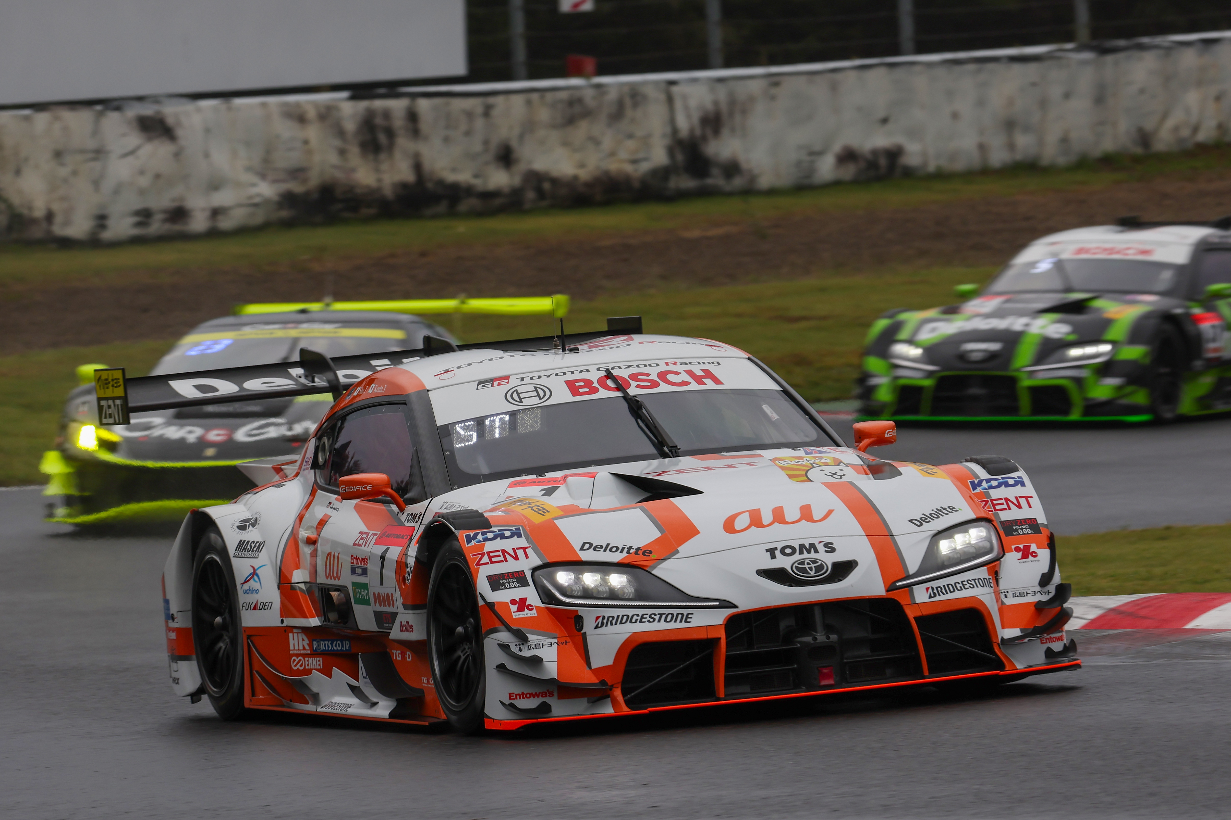 GT500クラスでは #1 au TOM'S GR Supra(坪井翔選手/山下健太選手)がランキング首位、