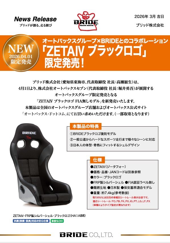 世界初 BRIDE×童夢 極限G対応レーシングシート【HYPER】新発売!