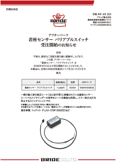 2026.4.15 着座センサー バリアブルスイッチ発売! |