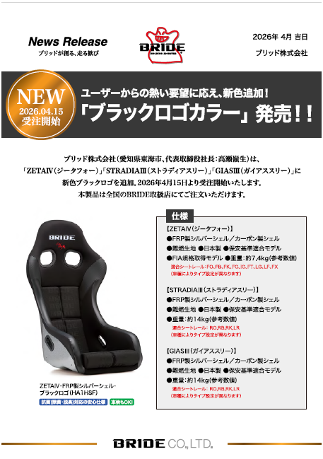 2026.1. 9 BRIDE初のFIA 8855-2021取得モデル【HYPERⅡ(ハイパーツー)】新発売‼ |