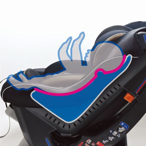 ●新生児の自然な姿勢(Cカーブ)をキープする"モアフラットシステム"