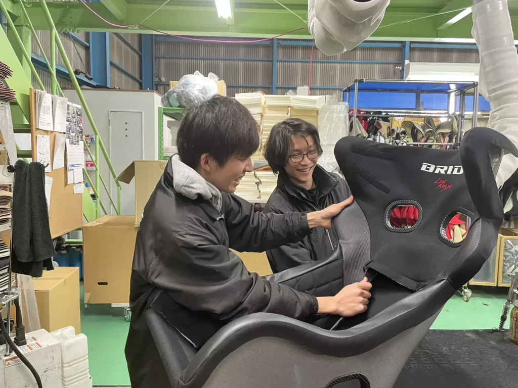 どんな会社に入っても、思っていたことと違うって絶対あると思うのですが、ありましたね、ブリッドでも。モータースポーツが好きな人なら皆知っていて、世界中にファンがいる会社なので、もっと機械的にものづくりをしているだろうと勝手に思っていました。想像以上に、手づくりでシートが作られていて本当に驚きました。職場環境も、良いアナログ感があります。前職と比較すると真逆です。自分で考えて、やりたいことをやりたいって言える環境です。