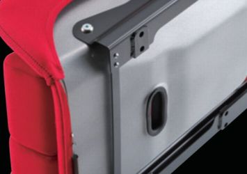GIASⅢは、3D-CADによって新設計されたボーンフレームとモノコックシェルにより、前モデルのGIASⅡと比較して、シートの剛性・強度が飛躍的に向上しています。また、操作性・利便性・耐久性を追求して新開発されたリクライニング機構およびワンタッチ式リクライニングレバーは、有段階調整ながら、バックラッシュやガタを極限まで抑えることで、より確実なホールド性と快適性を実現しました。そのほか、座面裏には6点式ハーネス用のベルトホールが新設され、座部・腿部のクッションには専用設計の高密度発泡ウレタンを採用しています。
