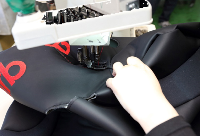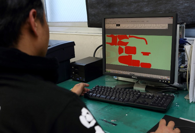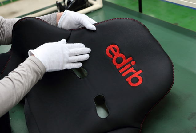 ブリッドのシート生地はプロテインレザー、高級スエード調生地、ファブリック素材など同じシェル形状でもシートの用途、お客様の好みにあわせることができるように使い分けられています。それぞれのシート形状やサイズによってシートカバーは一つ一つ異なります。シートカバーはCAD設計によりパターン図が制作された後、最先端の自動裁断機によりパターンにそって裁断された後、熟練の職人の手作業で縫製しシートカバーへと仕上げられていきます。シートカバーをシェルに被せる際に余分な生地や張りすぎることなくきちんとフィットさせるために、立体的で複雑な形状になっているので縫製には非常に高い技術が必要です。また、シートカバーは立体的な形状のため折シワがつかないよう在庫せずに、シート製造のタイミングにあわせて縫製します。縫製後は専任の検品担当者によって1枚ずつ検品され、縫い目やほつれなどを確認します。高い品質へのこだわりは縫製工程にも現れています。