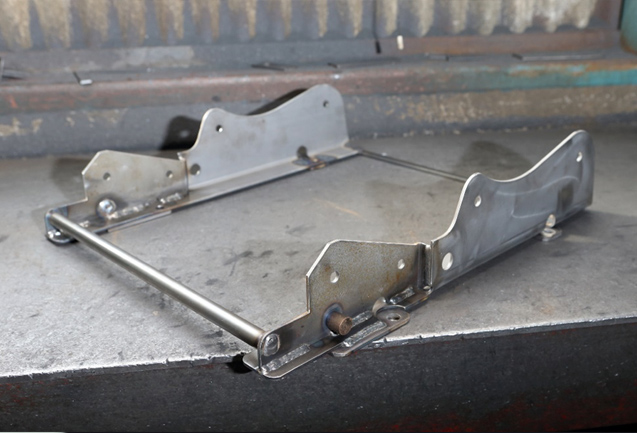 スポーツシートを車に取り付ける場合にはシートレールが必要になりますが、数多くの車種に適合するシートを持つブリッドはシートレール製造においても強いこだわりを持っています、一台一台形状の違うフレームを持つ実車から手作業で精密に採寸しマスターレールを制作した後、量産用の治具を作り量産する手法を取っています。コンピューターを使用しレールを設計することもできますが、計測値に幅を持たせる必要があるコンピューターを使用するのではなく各寸法を手作業で採寸することで各ボルト穴のサイズなど細かい部分まで正確に設計することで、ボルト穴の余計な隙間などを無くし、車体とシートレール、シートとシートレールのフィッティングを極限まで高めています。