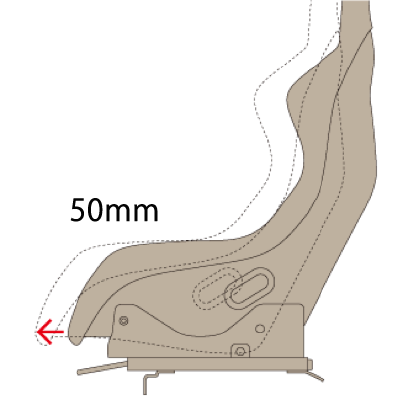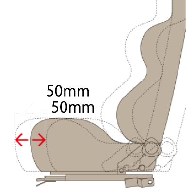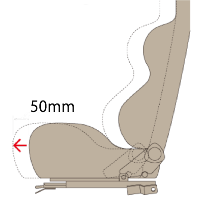 - MO/MB/MKタイプ、旧Sシリーズ、旧Yシリーズのシートレールを使って、標準ポジションよりも前に50mmオフセットすることができます。後ろには使用できません。
